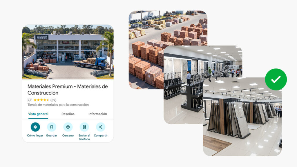 Es tu vidriera digital. Cuando alguien busca «cemento en Capital Federal» o «hierro cerca de mí», Google le muestra una lista de negocios con toda su información: dirección, horarios, fotos, reseñas y teléfono. Si tu perfil está optimizado, vas a aparecer primero. Si no, tu competencia te está robando ventas.